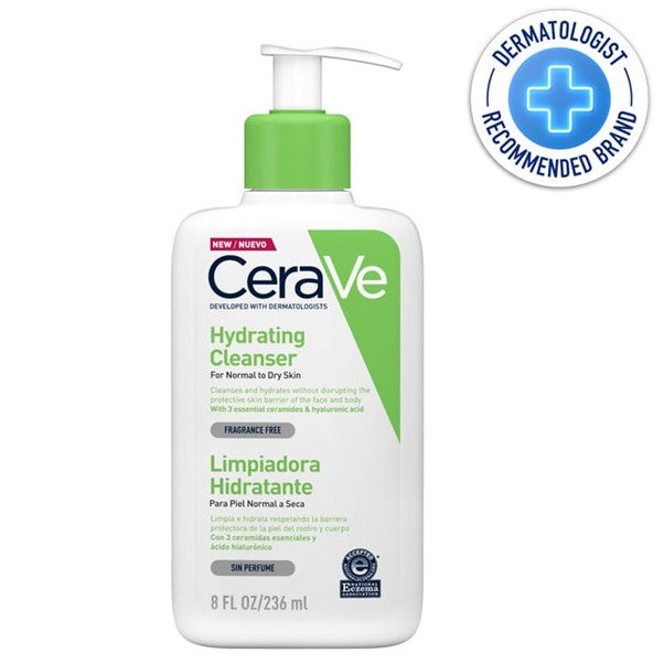 CeraVe Hydrating Cleanser was developed with dermatologists to cleanse and refresh the skin without over-stripping it or leaving it feeling tight and dry. Featuring three types of essential ceramides for skin to help strengthen the skin’s protective barrier and hydrating hyaluronic acid, this non-comedogenic face wash is an effective yet non-irritating way to start off any skincare regimen for normal to dry skin—and it uses MVE Technology to provide 24-hour hydration.