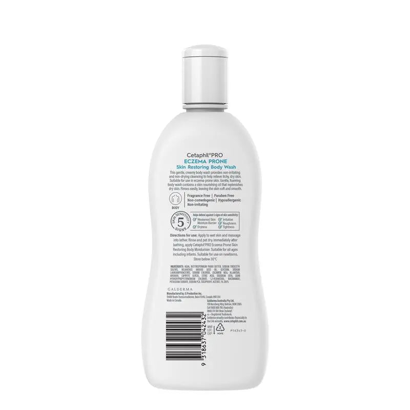 Cetaphil Pro Eczema Prone Body Wash is a gentle, creamy body wash providing non-irritating and non-drying cleansing to help relieve itchy, dry skin. This gentle and foaming body wash contains skin nourishing oils that replenish dry skin. It rinses easily, leaving the skin soft and smooth. Cetaphil Pro Eczema Prone Body Wash is suitable to use for all ages including babies and is dermatologically tested.