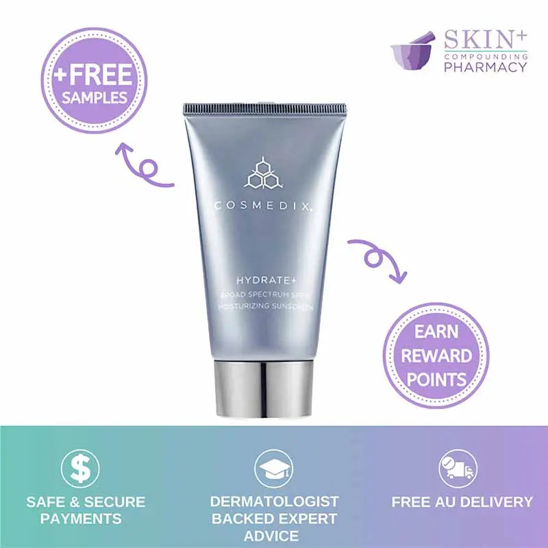 Hydrate+ is a Moisturizing Sunscreen with SPF 17 that provides much-needed hydration to the skin, helping fight signs of aging while offering broad spectrum UV protection.
