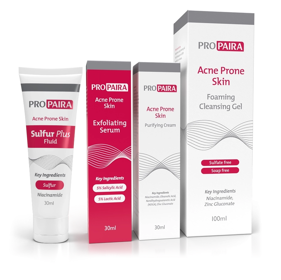 Propaira Purifying Cream and Foaming Cleansing Gel as well as 10% Exfoliating Serum have been designed to target Redness, Pimples, Blemishes, Black and White Heads and Excessive Oil Production without dryness, irritation or Sun reaction.